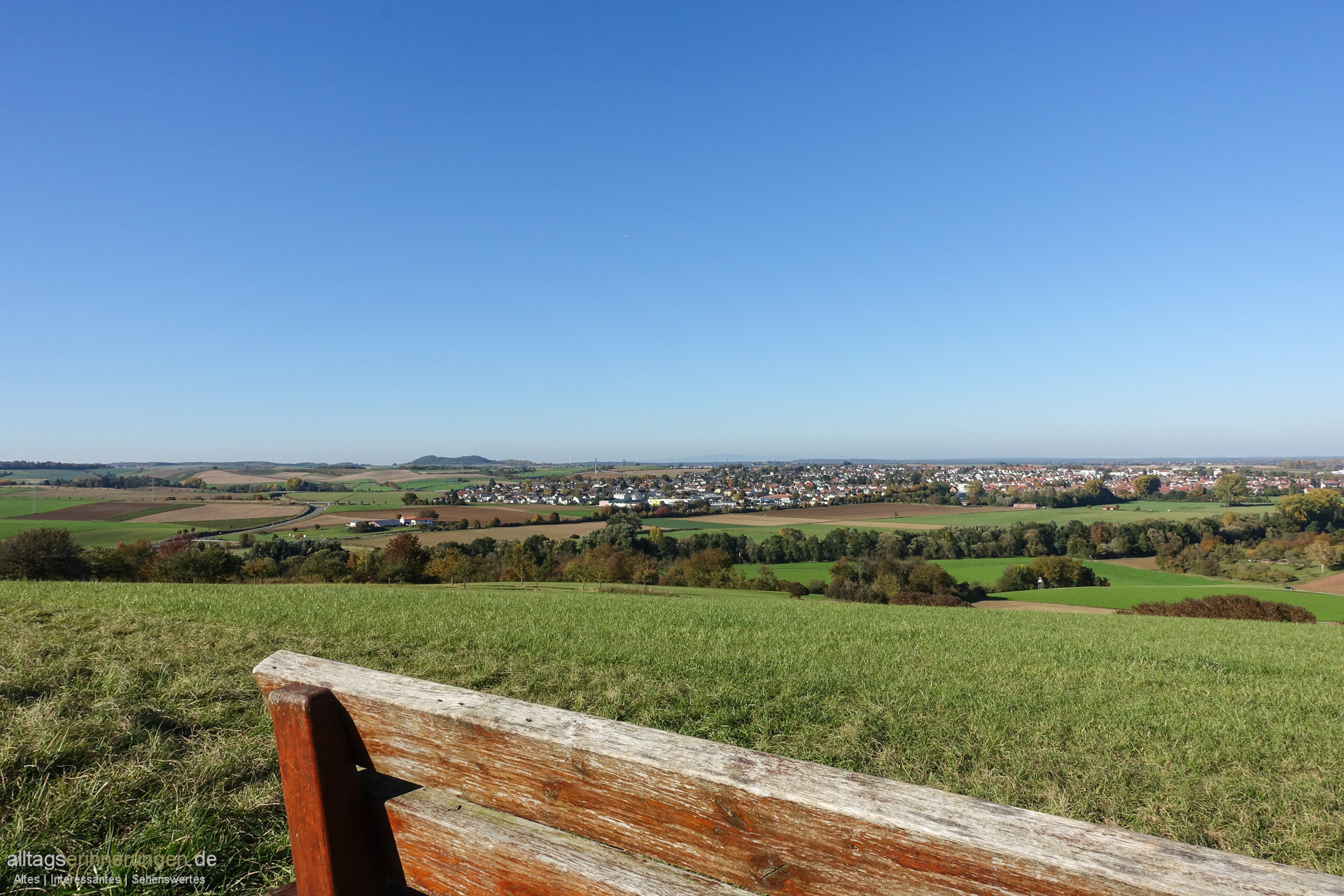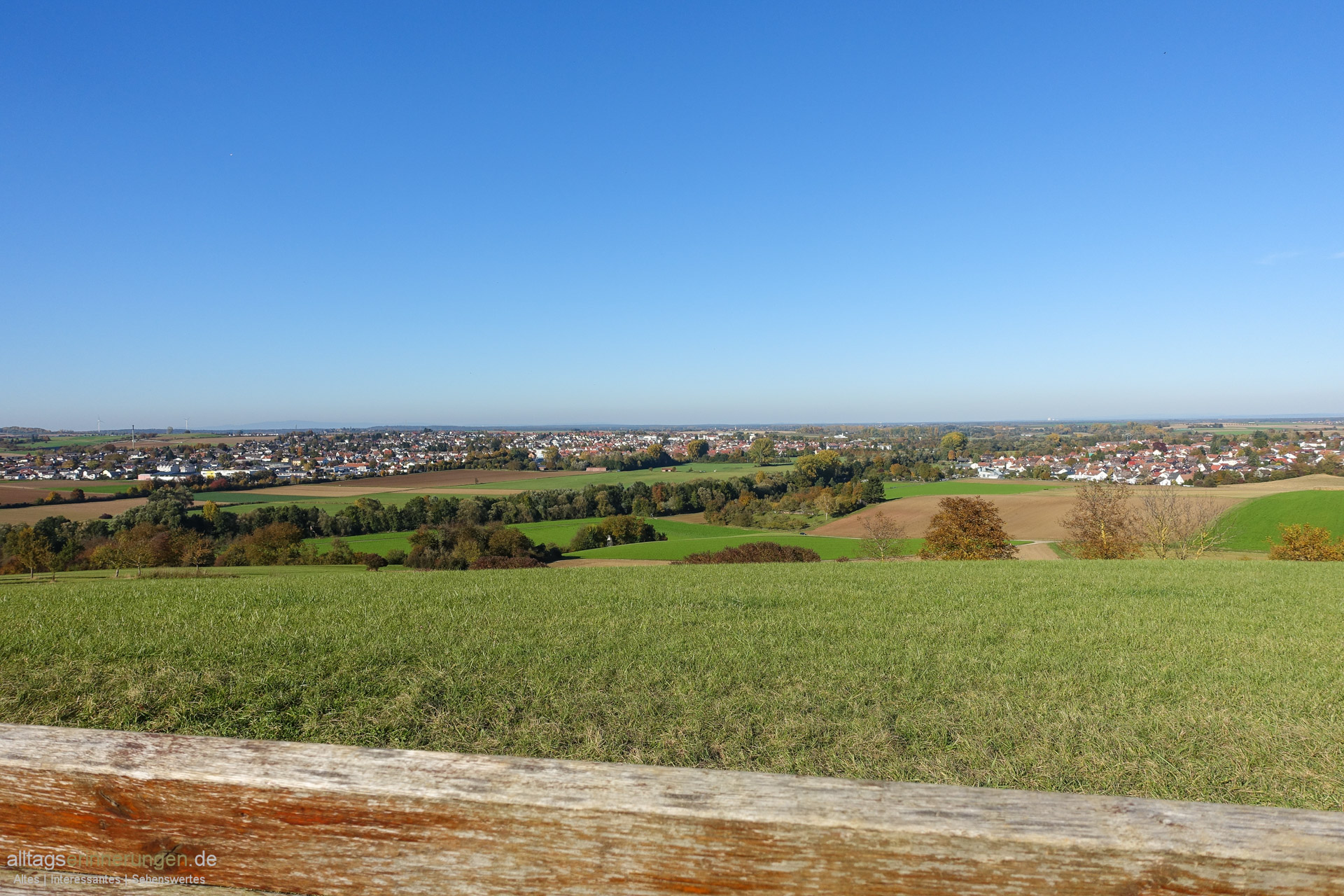 Weit ist es nicht hinauf. Der Ausblick ist weit in das Reinheimer Hügelland hinaus.