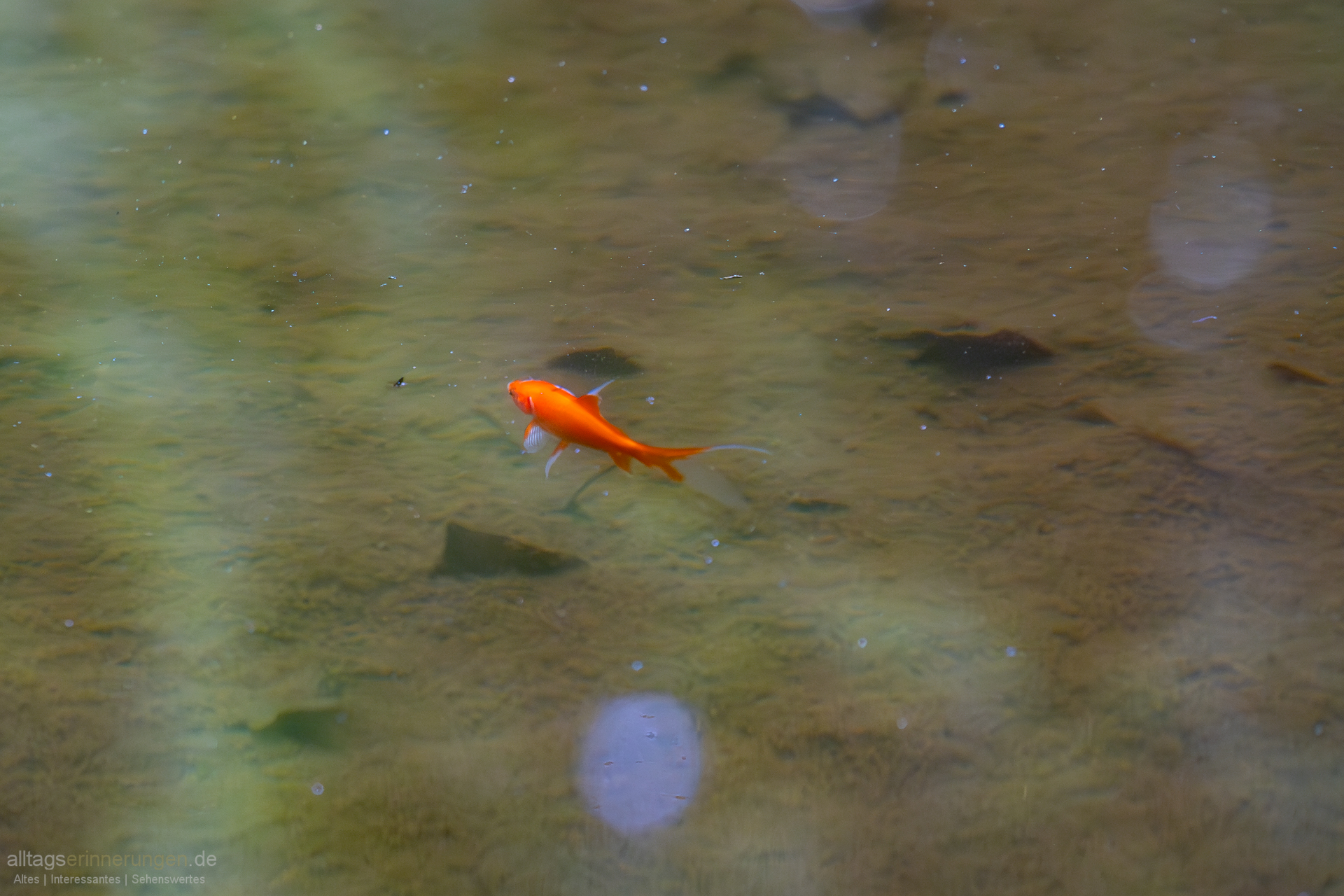 Ich sehe ihn nur einmal an den Goldfischen vorbeischwimmen.
