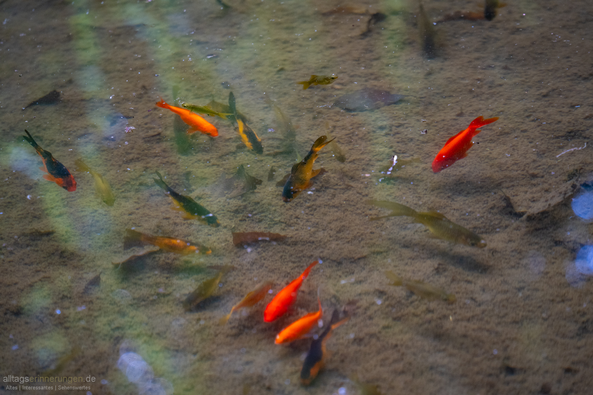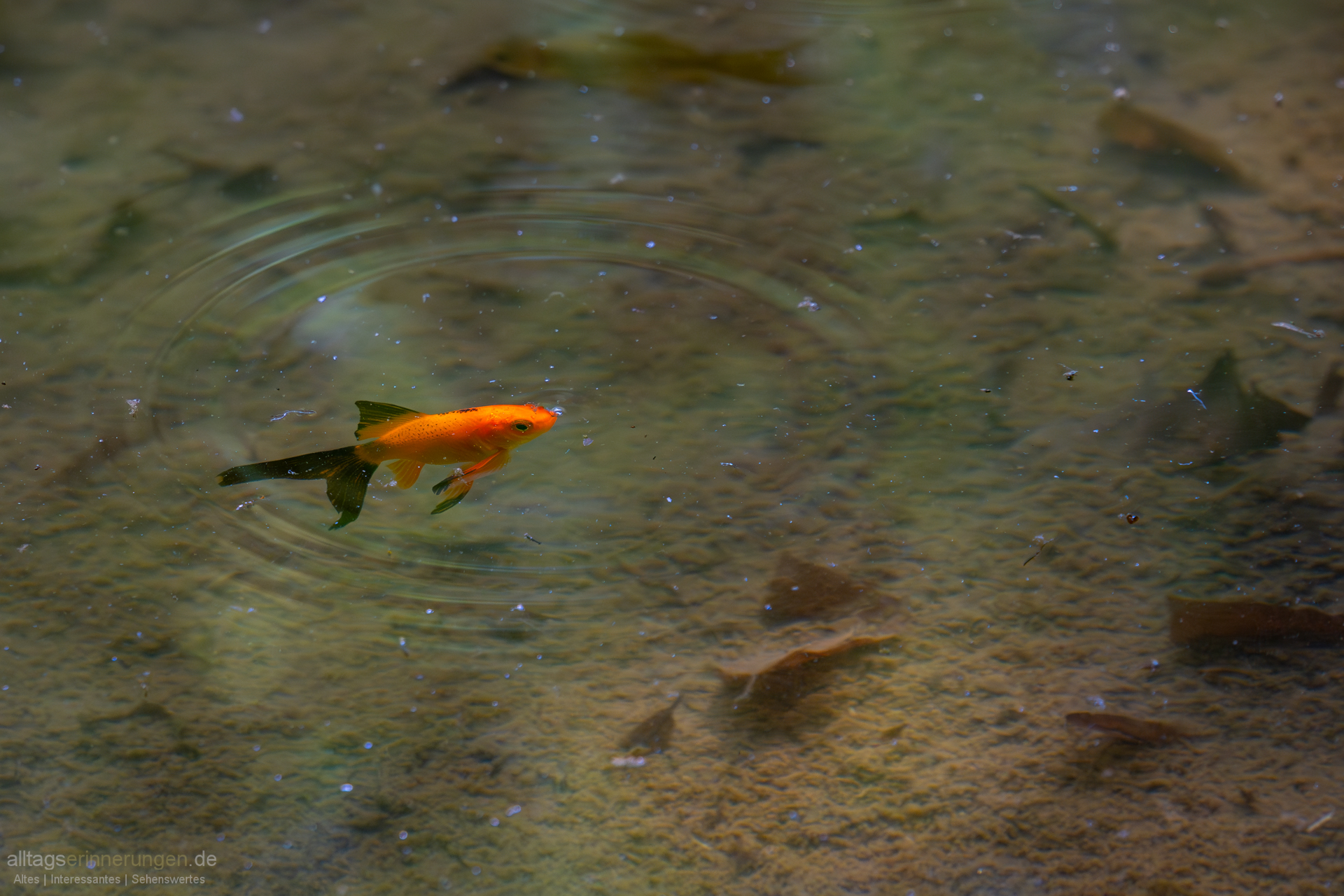 Goldfische eilen durch das klare Wasser. Ein paar Vögel erzählen sich in den grünen Zweigen der umstehenden Bäume. Ich bin am Waldrand.