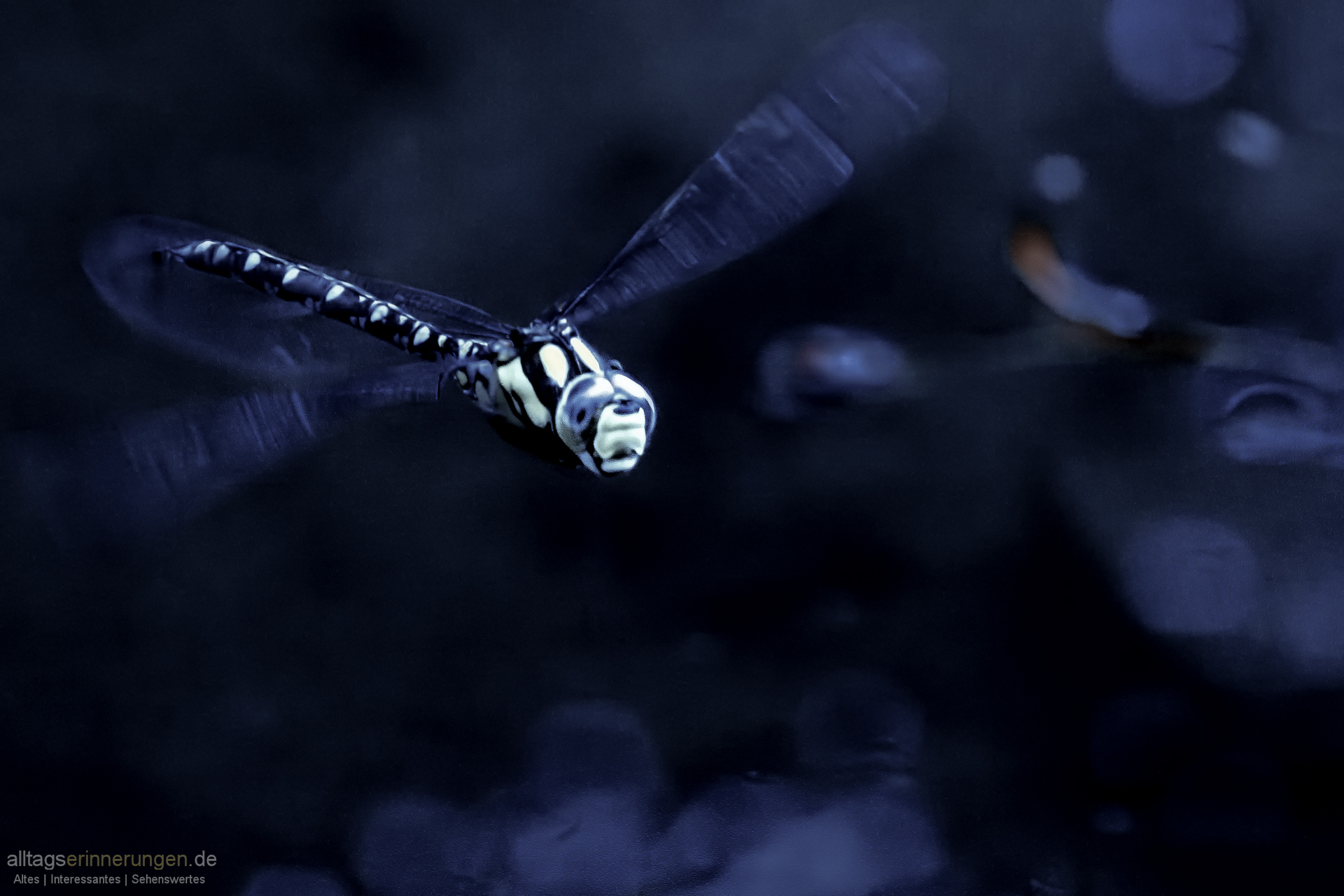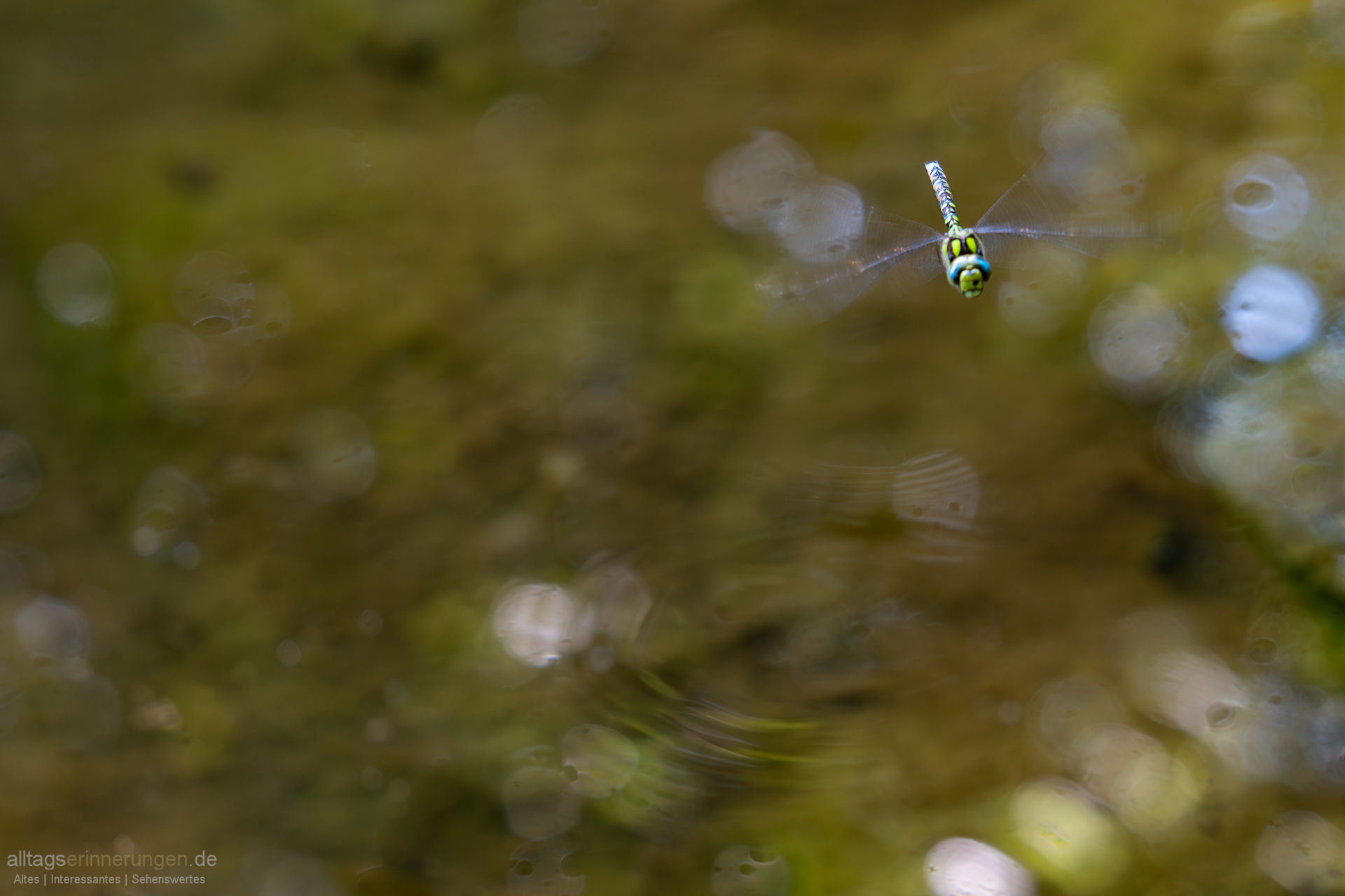 Fleißig fliegt sie ihr Revier ab – immer im Quadrat an den Rändern des kleinen Gewässers entlang.