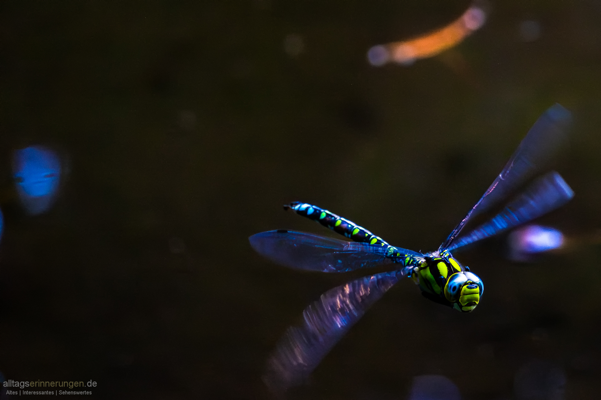 Plötzlich schwirrt ein Weibchen heran. IM Gegensatz zum Männchen ist es grün gefärbt.