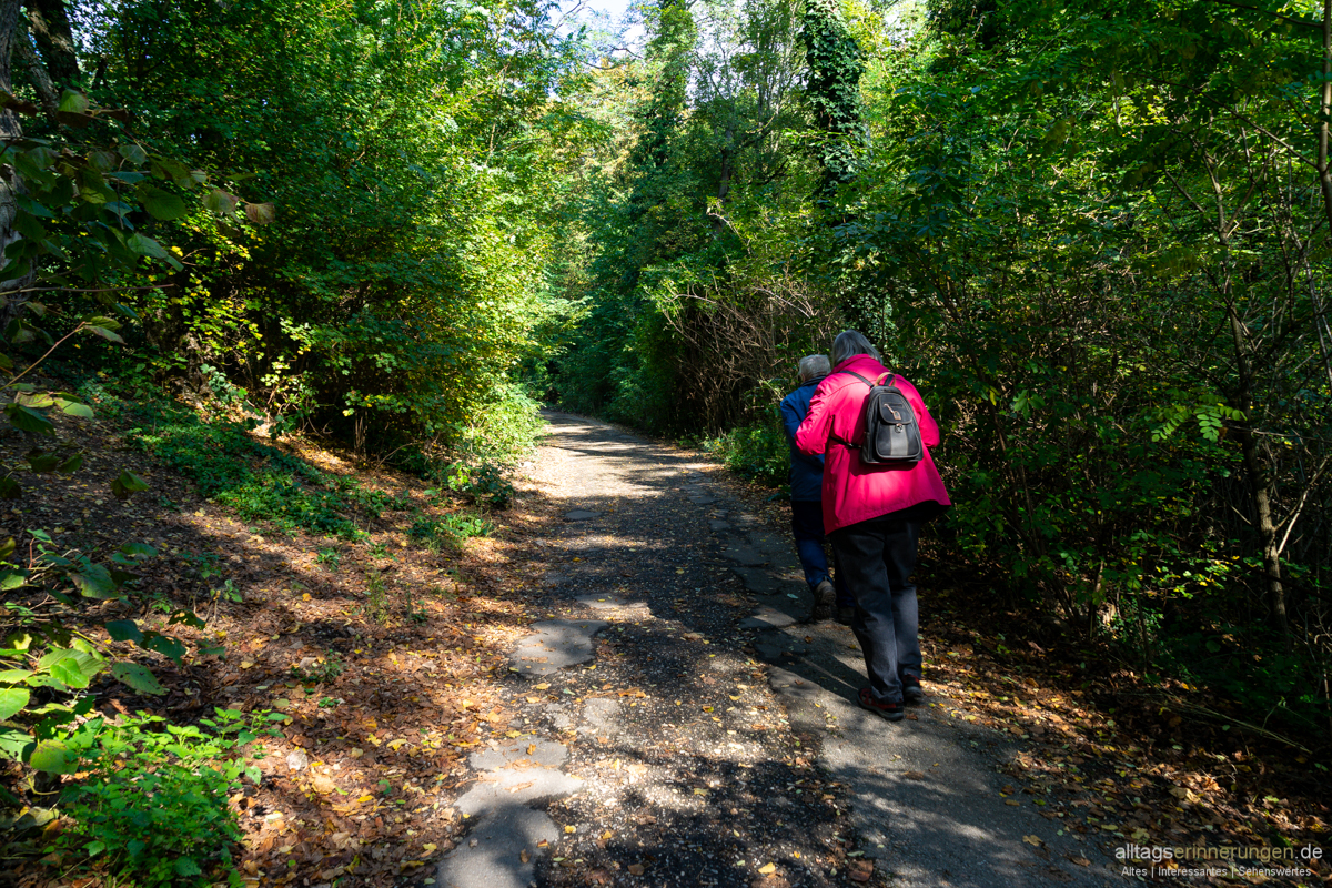 Vom Auto führt ein asphaltierter Weg in den ehemaligen Steinbruch.