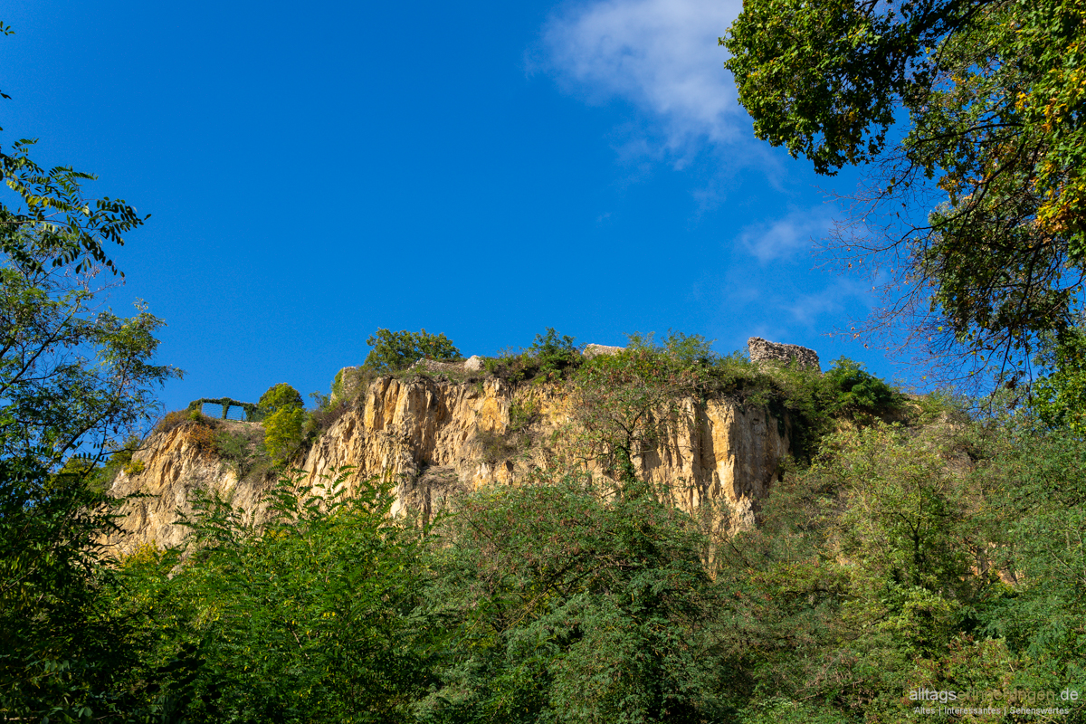 Hier wurde Porphyr abgebaut. Was auch der Ruine zum Verhängnis wurde.