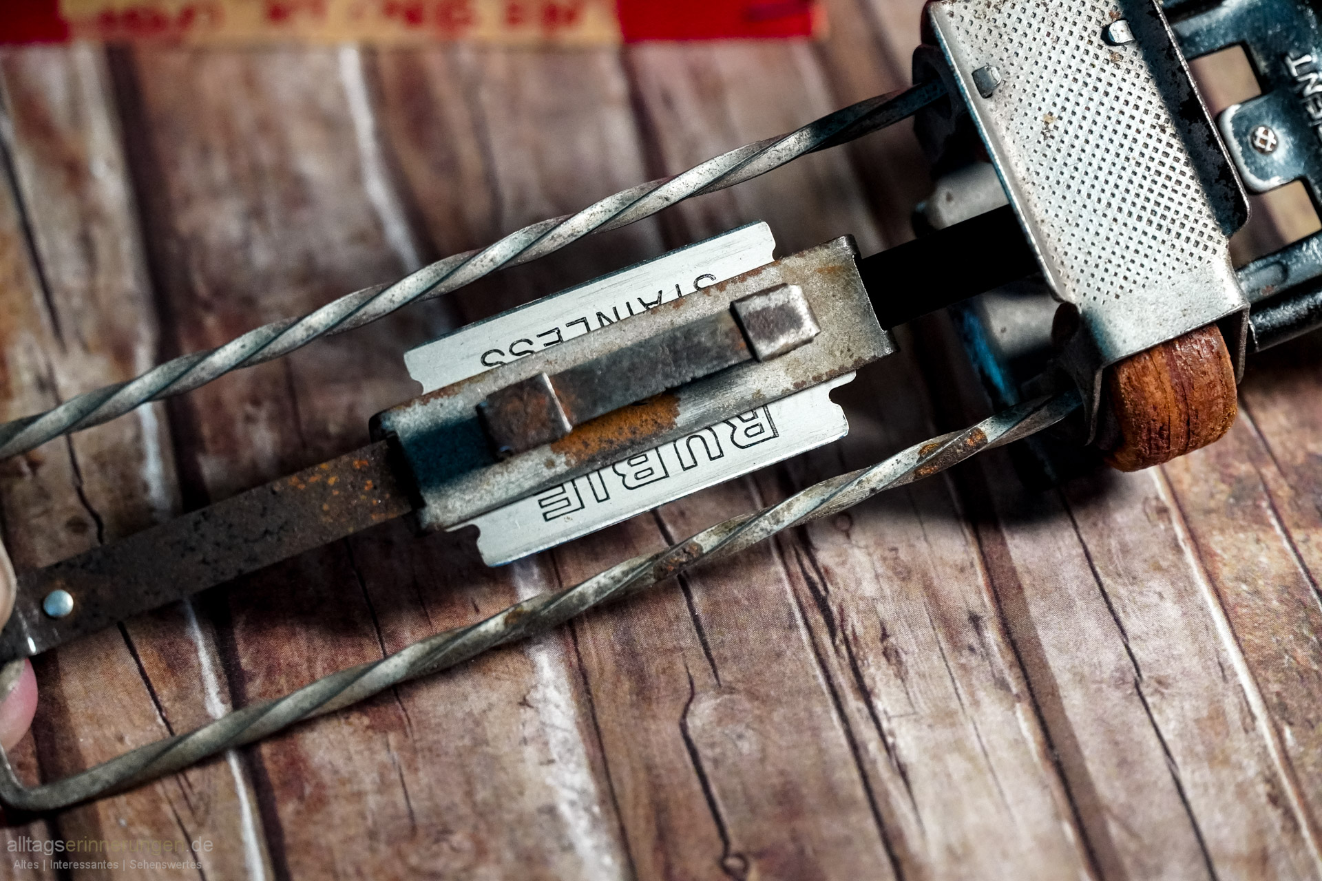 Rasierklingen wurden teuer und mit den Schärfapparaten konnten diese länger verwendet werden. So traten unzählige findige Konstrukteure auf den Plan, um Abhilfe zu schaffen.