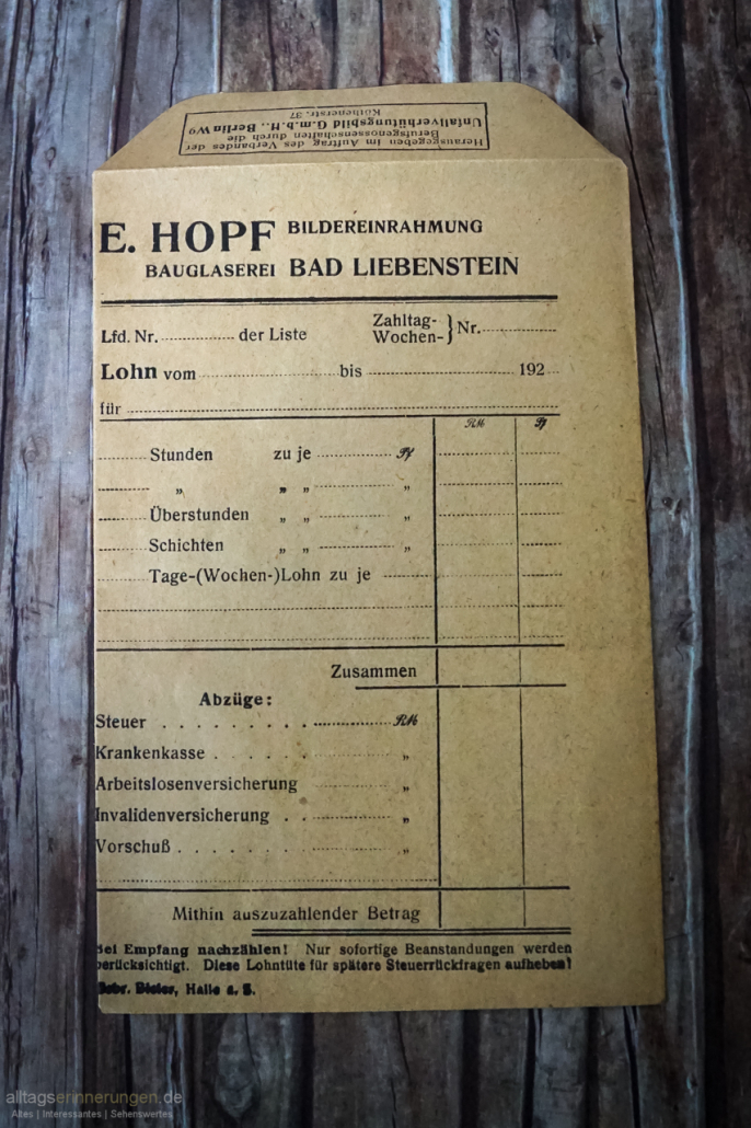 Alte Fundstücke auf Alltagserinnerungen.de Jeden Tag verlöschen die Feuer der Erinnerung.Damit sie nicht unwiederbringlich verloren gehen halte ich sie am Leben.Heute: Die Lohntüte.
