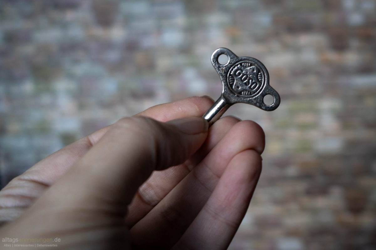 Mein heutiges Fundstück stammt wohl aus den 1950er Jahren, vielleicht aus den späten 1940er Jahren. Er verfügt über einen Federantrieb, welcher mit einem Schlüssel aufgezogen werden kann.