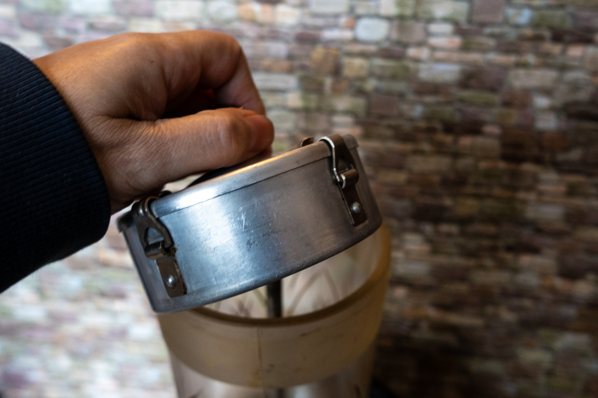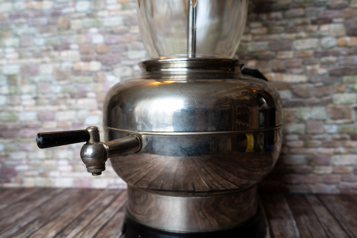 Ausgelassen wird das fertige Getränk durch einen Hahn am Wasser- bzw. später Kaffeebehälter.
