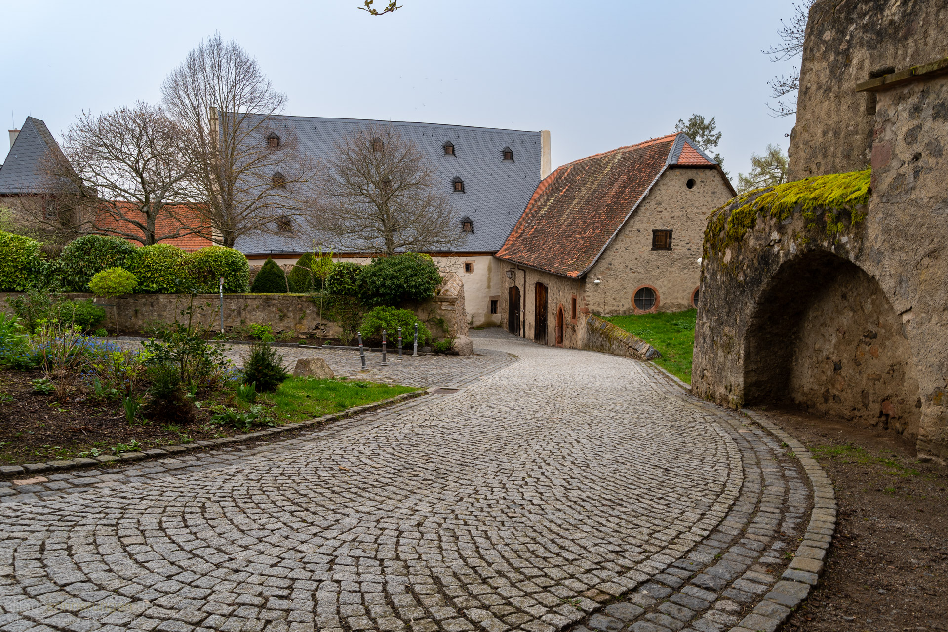 Ich gehe durch den Torgang. Früher beliebt bei Kindern wegen dem Hall. Danach kommt die Vorburg mit dem Marstall und anderen alten Gebäuden. Diese wurden in zurückliegenden Jahren umfangreich saniert.