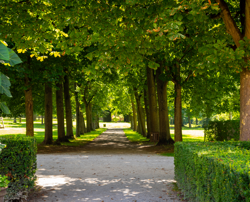Somit ist dieser eingerahmt von diesen Bauwerken und bietet einen offenen Bewegungsraum zwischen Kirche und Schloss.