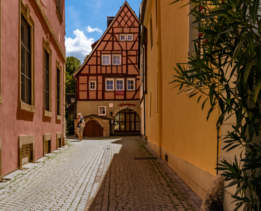 Unterwegs in Weikersheim. Eine Stadt im Main-Tauber-Kreis im Nordosten von Baden-Württemberg.