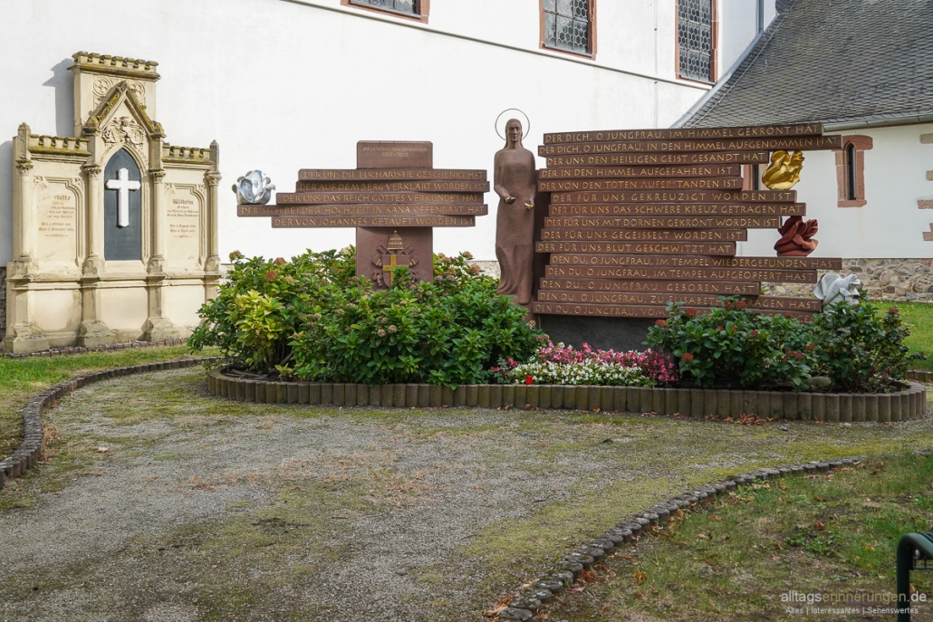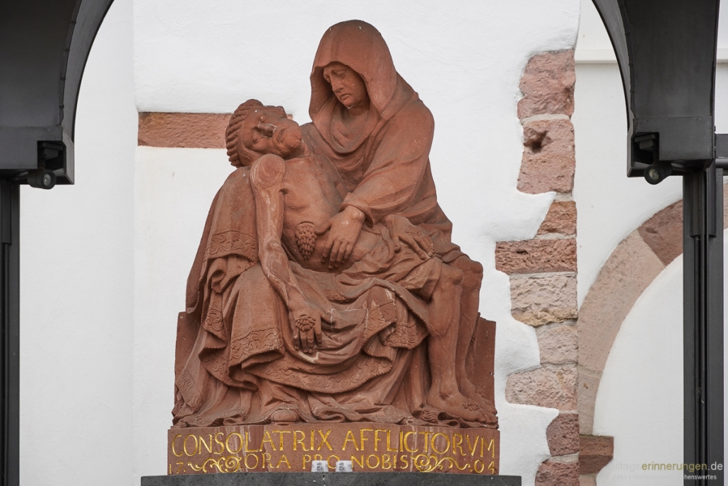 Aber heute ist ein Stationsweg zu den “Sieben Schmerzen Mariens” erhalten, welche durch den Darmstädter Bildhauer Adam Winter angelegt worden sind.